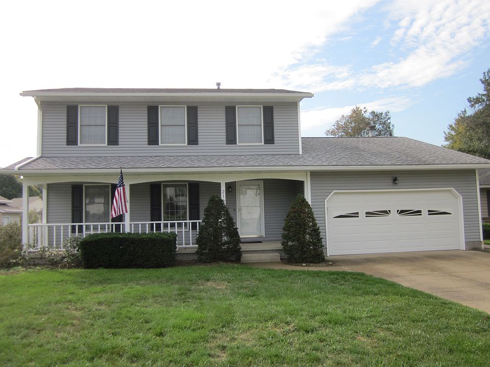 LOVELY colonial ready for you to make your home sweet home. This property has an open floor plan from the moment you walk in the front door. The living room opens up to the dining area with a bay window and then onto the kitchen. The eat-in kitchen opens up to the family room with a fireplace and sliding glass doors which open up onto the deck. Great for a cookout and guests. Updated stone counter tops, back splash. If you like summer evenings on the front porch, this one is for you! Master bedroom with master bath and walk-in closets. A/C in 2011. ALL appliances stay including washer and dryer. Call your agent for a showing today!