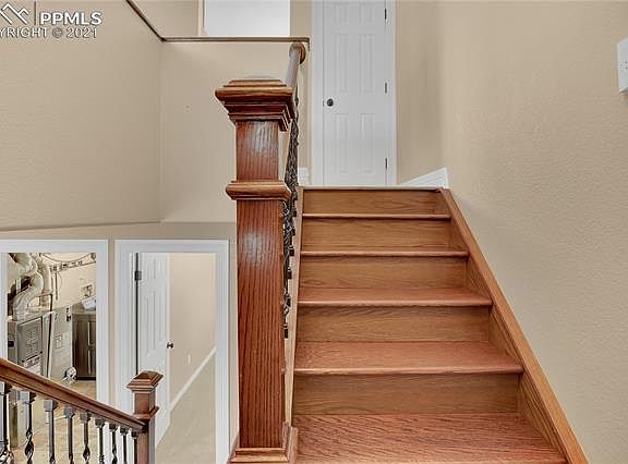 THIS FANTASTIC 4 BEDROOM, 2 FULL BATHROOM, 2-CAR OVERSIZE GARAGE, STUCCO HOME ON A TREE-LINED STREET HAS BEEN VERY MUCH CARED FOR AND LOVED. HARDWOOD FLOORING AND UPGRADED WROUGHT IRON RAILINGS GREET YOU AT THE ENTRY. THE KITCHEN HAS PLENTY OF STORAGE AND STAINLESS STEEL APPLIANCES, AN UPGRADED 4-DOOR REFRIGERATOR, NEW GARBAGE DISPOSAL, AND A WALKOUT TO THE DECK, WHICH TAKES YOU DOWN TO THE LARGE PATIO AND FULLY FENCED, VERY PRIVATE BACK YARD WITH LARGE STORAGE SHED. THE MASTER, A SECOND BEDROOM, AND THE VAULTED CEILING LIVING ROOM WITH LARGE WINDOW ARE ON THE MAIN LEVEL, AND TWO MORE BEDROOMS WITH CEILING FANS AND BRANDNEW CARPET, CERAMIC TILED LAUNDRY ROOM, AND FAMILY ROOM WITH HARDWOODS AND A BEAUTIFUL FIREPLACE ARE ON THE LOWER LEVEL. ALARM SYSTEM AND WIRED FOR CAMERAS, HIGH-EFFICIENCY TOILETS, STYLISH FIXTURES AND COLOR PALETTE THROUGHOUT, COVERED FRONT PORCH, MATURE LANDSCAPING, AND VIEW OF PIKES PEAK. THE GARAGE HAS PLENTY OF ROOM FOR TWO VEHICLES AND ADDITIONAL STORAGE OR WORK AREA. PLENTY OF CLOSET SPACE AND STORAGE THROUGHOUT- LARGE CLOSETS IN EACH BEDROOM. NEWER PAINT INSIDE, NEWLY PAINTED DECK, NEWER ROOF, CENTRAL AIR CONDITIONING, AND WASHER AND DRYER. THIS HOME IS ABSOLUTELY MOVE-IN READY! CLOSE TO COS AIRPORT, I-25, MILITARY BASES, SHOPPING, AND RESTAURANTS, SCHOOL, PARKS, AND SOUTH POWERS BLVD.