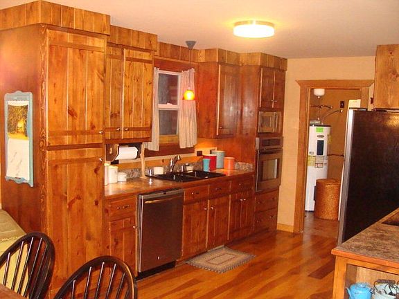 Nice log home on 1.56 acre partially fenced lot. 3 (split) bedrooms, 2 baths, vaulted ceiling w/exposed beams, large eat-in kitchen, 24' x 30' 2 car detached garage w/add-on storage shed and attic, gas log fireplace, 330 gal. propane tank, leaf filter gutters, large garden spot, 11' x 15' garden pond w/waterfall, chip seal driveway and parking area.