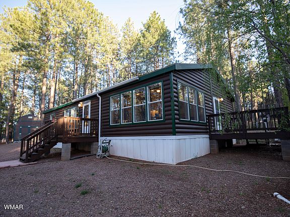 Altitude Adjustment A Forest Lakes getaway on a 1 acre cabin site with beautiful towering pines nestled on a quiet cul de sac just steps away from the Sitgreaves National Forest is now for sale! The cabin was manufactured in 2007 utilizing 2'' x 6'' wood frame & log siding construction. The design features a great room with a warm wood burning fireplace, a spacious island kitchen with lots of cabinet space, L.P. gas stove, and a dining area full of natural light and views of the surrounding forest. The owner's bedroom suite has a large ensuite bathroom & big walk in closet. The guest rooms are split from the owner's suite and have another full bathroom to share. The interior laundry has a side door to the exterior of the home. Two humongous Tuff sheds and extra outbuildings that can house your boat or side by side and all your mountain gear and storage needs.