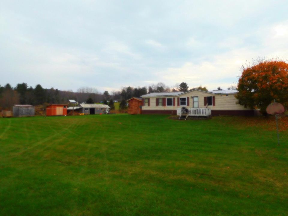So much more than a home on 18.5 acres situated mid-way between Oneonta and Cooperstown! Looking to work and live on the same property? Start with a 3-bedroom 3-bathroom 1560 square foot doublewide. Next, there is an oversized garage that measures 34'x 48' with 14 ft high walls, a 14 ft x 12 ft wide overhead door and 10'x 10' overhead side door with a 20'x 28' apartment/office with its own bathroom and septic. Add a 28' x 30' x 8' woodshed, a 16' x 30' outbuilding, a 16'x 20' outbuilding, a horse run, a chicken coop and a pond. Now you have a complete description of this versatile property. This is an amazing value and one-of-a-kind- opportunity to live and work on your own property. The garage is currently being used to repair/restore trucks, cars and tractors. Other items for sale include: a saw mill, lift, small sheds and several 4o ft. trailers, Thinking outside the box might give you the option of turning the garage into horse stables, with over 18 acres anything is possible. OUTSTANDING VALUE at only $199,000.00. Here's an opportunity to own this home with 5 acres at a reduced price additional information on MLS # 118801.