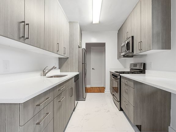 Incentive: 3.0 month(s) free on a 12 month lease. The gross rent reflected on the lease agreement is $2,350 and the net effective rent is $1,763. (Promotions apply to new residents and immediate move-ins only.) No-fee studio apartment located on Pelham Parkway in The Bronx. Apartment features a large living room, renovated kitchen, and a marble-tiled bathroom. Located on the tree-lined Pelham Parkway, the Pelham Parkway Towers offers an on-site parking garage, on-site laundry facilities, and a central location near shopping, restaurants, and multiple transit options. Please note images may reflect either a model unit or comparable apartment with a similar layout and/or finishes. The actual apartment may slightly differ.