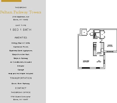 Apartment Description: Contact us for more information or apply online to begin the leasing process. Building Description: Enjoy the most elegant buildings and newly renovated residences that Bronx real estate has to offer with these Pelham Parkway Towers apartments. Indulge in thoughtfully-designed units with stainless steel appliances, hardwood floors, modern finishes, and beautiful views. With many apartments featuring balconies, feel at home with gorgeous outdoor space overlooking Pelham Park. Garage parking and on-site laundry facilities provide every tenant with convenience and comfort.