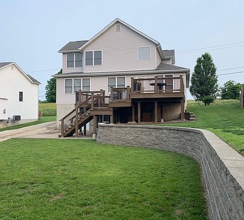 Huge price reduction! Motivated seller! Meticulously kept home offers 2,000 sq ft, 3 bedrooms, 2 ½ baths, 2 car attached garage. Covered front porch leads to the first floor living room with gas fireplace, separate dining room, kitchen with island and abundant storage, breakfast room, sunroom off the kitchen that walks out to a large, multi-level deck. Kitchen appliances stay, as well as the washer/dryer and all window treatments! Main floor laundry. Hardwood throughout main level. The second floor boasts the owners bedroom-suite with vaulted ceiling, dual walk-in closets, jacuzzi tub with separate shower. Also, on the second floor are 2 additional bedrooms and another full bath. The walkout basement has been completely studded out for finishing and has rough in for bath. Public sewer and water. Charter internet. No HOA, no restrictions. Second driveway with off-street parking including large area to accommodate RV or boat. 1 full year Home Warranty to be included.