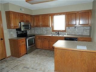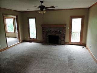 This updated ranch sits on a corner lot & has a great wooded view. Great room has brick fireplace, wooded view & walks out to deck. Family room in lower level has a brick fireplace & walkout. Updated kitchen: countertops, tile floor, pantry & island. Bay window & vaulted wood ceiling in dining room. This is a HUD home, case# 291-442695 and will be sold as is. Call 816-322-6911 for bidding information or to see this home. See more info at www.123HomeSearch.com