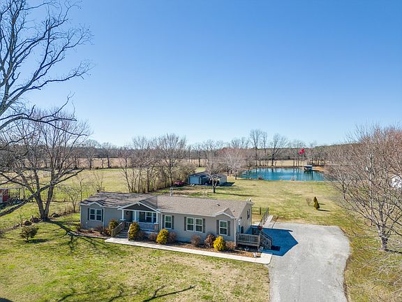 Enjoy the tranquility of this home located on 2.48 acres of privacy with a beautiful view of surrounding cropland. The 2100 sq. ft home features spacious rooms throughout. The kitchen is the center of the home w/large island & abundant cabinetry. The owners' suite offers a garden tub, separate shower, dbl vanities & two walk in closets. Additional amenities include the 24x16 living room w/gas fireplace, guest bedroom w/walk in closet & an additional16x14 room with walk-in closet, presently used as a third bedroom. The 30x14 workshop w/porch, stocked fish pond & 30x18 shed provide numerous opportunities for enjoying the outdoors. Bring your pets or animals. Convenient to shopping, schools & medical facilities. Easy commute to Murfreesboro or Nashville. No city taxes.