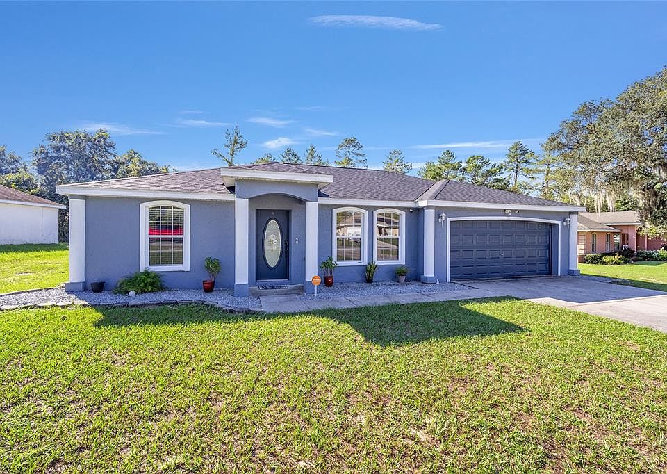 Excellent location in the SW of Ocala. You'll be impressed by the stunning curb appeal of the yard and the complete vinyl privacy fencing in the back. You will immediately feel at home with the bright and open floorplan, vinyl and tiled flooring throughout, dining area off the kitchen. Speaking of the kitchen, get ready to create some real culinary masterpieces for the whole family with the prep island, stainless appliances, and plenty of storage room including a large pantry. Cozy up to the breakfast bar before heading out for your daily routines. Oversized primary bedroom and bath. Close to everything such as major highways, numerous restaurant choices and fun entertainment venues.