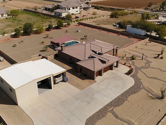 Stunning Acreage Property! This split floorplan home has too many features to list. Gourmet kitchen boasts granite countertops, custom cabinetry and opens up to a cozy family room complete with fireplace. The elegant master suite features a private bathroom including double vanity, jetted jacuzzi tub and tiled walk-in shower. Large covered and tiled patio leads you to the swimming pool with baja shelf. Property is fully landscaped and fenced with block wall. 1400 Sq. Ft. Air conditioned shop!