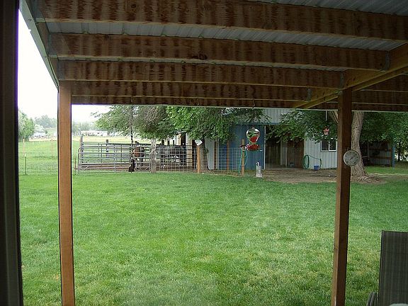 Ideal set up for horses. Barn built in 2008 with additional hay storage attached. Barn also has hay storage. Large tack room. 2 horse stalls with runs. Small pasture for turnout, the rest of acreage is used for raising our own hay. We have over a 100 trees which is a shelter belt. Has a brand new 30 year roof. Has just been painted.