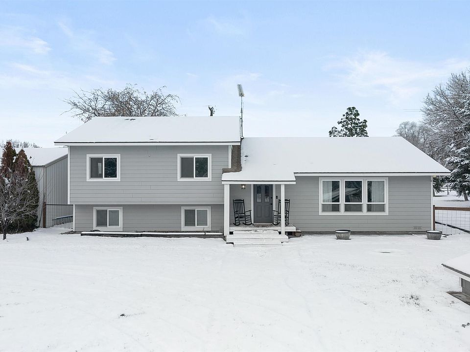 MLS# 265726 Circling through the 2 acre property driveway, welcomes you to 216008 E Farm Rd. This farmhouse features 3 bedrooms, 2 1/2 baths, with a large flex room that you can use as another bedroom, game room, theater room, large office, it is a great room for just about any need. Sellers favorite place in home is the living room, its’ been the place where everyone gathers spending quality time and enjoy the views out the big window. Just about every room upstairs has a beautiful view as well of the surrounding country hills. Several updates have been made inside and out: windows, concrete siding, exterior paint, lighting through out, flooring/carpet/laminate wood, central vac system, quartz countertops, hot water tank, interior paint, well/pump/tank, so much love and care for this home. 2 acres, with fully fenced front yard, partially fenced back, fenced in chicken coop, underground sprinklers through out. Full RV hook-up with septic and electric. Main shop over 2800 sq ft with heating and cooling, pull through garage bay doors, half bath, plumbed in air compressor through out, also central vac in shop, 2-20 outlet, electric hoist. Second shop is 800 sq ft. This property really is a prize, room for all your animals, toys, business, the possibilities are endless, schedule a showing today with your favorite realtor.