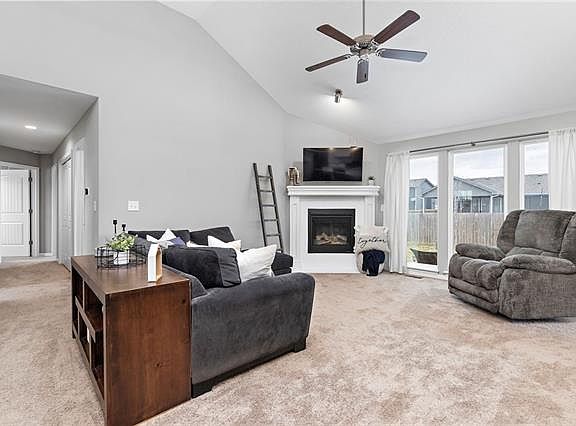 - Features: Carpet, Ceiling Fan(s), Fireplace