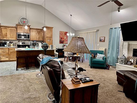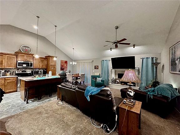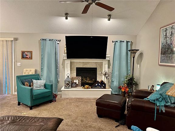 • Features: Carpet, Ceiling Fan(s), Fireplace