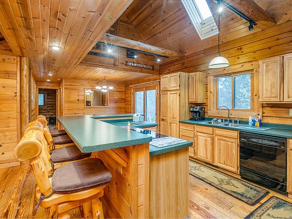 Enjoy Privacy and Pure Nature in this Custom Built Log Home on 5.5 acres. This high quality D-Log construction provides maximum durability and insulation. This home features skylights with vaulted ceilings, hardwood floors, 2 sided stone fireplace open to foyer and great room, knotty pine throughout, hot-tub hookup on the patio and full unfinished walkout basement. Watch for wildlife from your kitchen or on the custom built porch swing. 2 car attached garage. Basement plumbed for 3rd bathroom. Brand new furnace, 2019 refrigerator. Do not miss out on this amazing and meticulous property.