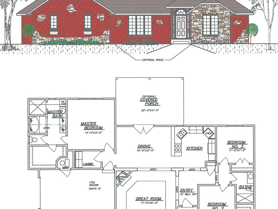 Virtual tour in photo section of listing of same floor plan. All pictures are of similar home, finishes/colors will vary. Construction not started. The Santa Fe floor plan offers 3 bedrooms and 2 bathrooms in a split layout. The master suite has a large walk in closet, double vanity, and ceramic tile in the master bath. The kitchen features a modern layout with under-mount corner sink and stove, ceramic tile, and granite counter tops. Large great room with arch top doorways and a gas self venting fireplace. Outside you will find 2 nearly flat acres, a stone front and a two car garage. The location of this soon to be built home is close to 65 hwy for easy access to Branson attractions!