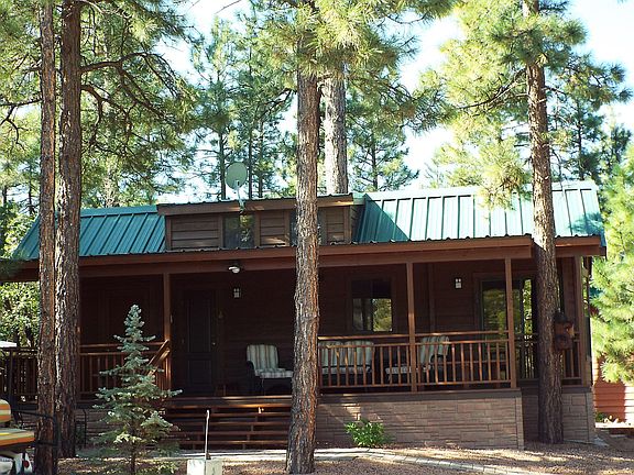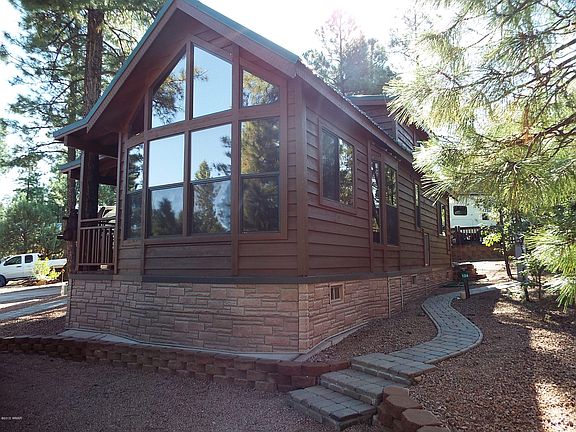 Fabulous wood sided home in White Mountain Vacation Village. Beautiful covered deck. Home is extremely well kept and nicely decorated! Turnkey furnished. Vaulted ceilings with a loft for use as a reading area or guest room. HOA includes water, sewer, trash removal, paved road service and clubhouse with fireplace, pool tables, showers, bathrooms, computer room, full sized kitchen, cable and internet, and coin operated laundry room. Open commons area with an exercise trail and duck pond. Enjoy the walking exercise trails among the pines. Concrete foundation. Low maintenance landscaping. Storage closet on deck has room for a washer and dryer and storage but needs plumbing, additional room for storage in under unit vault.