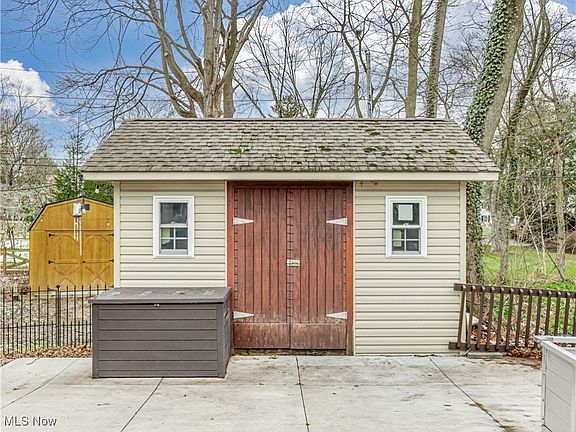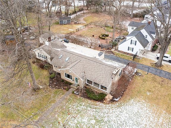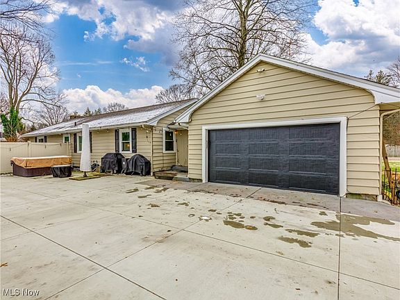 Welcome to 2161 Ganyard Road, a beautifully updated Ranch offering 3 bedrooms, 2 full baths, new roof ('23), an updated kitchen, abundant natural light—all in a walkable West Akron location close to West Side Bakery, 750mL wine bar and more. Enter through the front foyer with a coat closet into a bright, open floor plan. To the left, the dining room features a charming original built-in china cabinet and a large picture window (replaced in '23). The recently updated kitchen showcases a dramatic pitched ceiling, quartz countertops, painted wood cabinetry, and a large island with a GE Profile 5-burner gas range. Additional highlights include a composite sink, newer stainless-steel refrigerator, wall oven, beverage fridge, bay window, and pantry cabinet. The inviting living room offers tongue-and-groove paneling, a wood-burning fireplace, recessed lighting, and another large picture window. A back hallway leads to a spacious mudroom with built-ins and access to the attached, heated 2-car garage featuring an epoxy floor, new garage door ('23), and four windows. Back inside, you’ll find three well-sized bedrooms (one currently used as an office), all with hardwood floors. The main-floor full bath includes a tiled tub/shower, wood-look tile flooring, and an updated vanity. The partially finished lower level adds cozy living space with beautiful wood paneling, a second wood-burning fireplace (both fireplaces are used by the sellers), a wall heater for added coziness, a beautiful full bath with heated slate tile floors and walk-in shower, and a spacious guest bedroom with carpet and glass-block windows. Ample unfinished storage includes the laundry area. Outside, enjoy a concrete driveway with patio and hot tub, fence across driveway, pergola, two sheds and mature landscaping. With its thoughtful updates, inviting spaces, and excellent location, this cozy West Akron ranch is truly a wonderful place to call home.