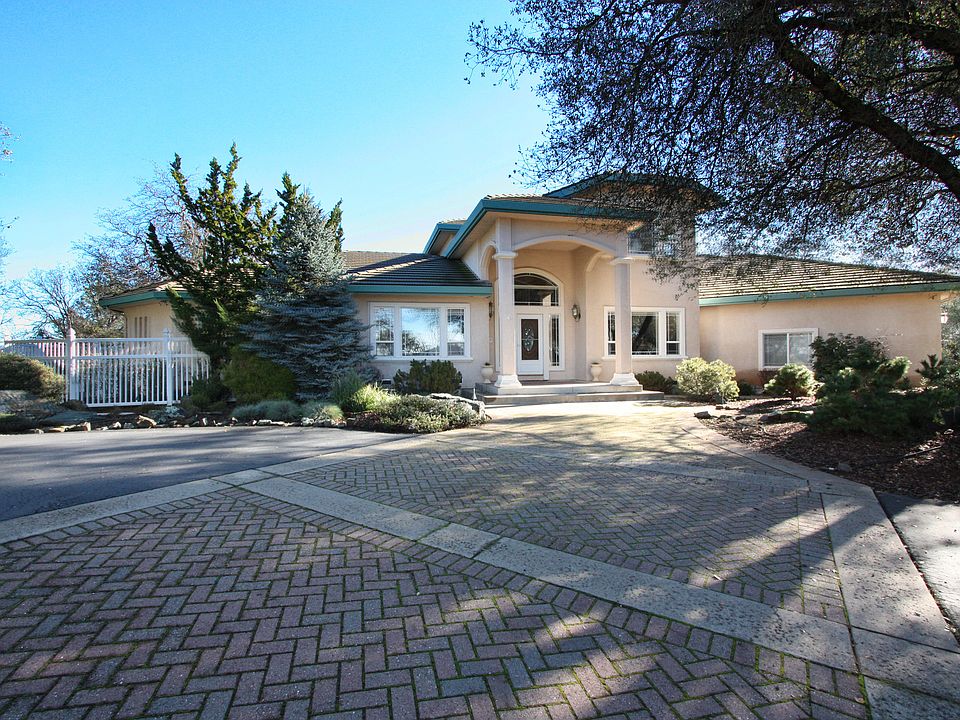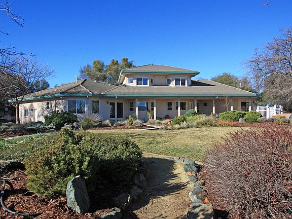 Elegant Greenstone Country Estate w/Spectacular SIERRA VIEW and Surrounding FOOTHILLS VIEWS! This Outstanding Home Lives Like A Single Story w/2 Master Suites on lower level, 3.5 Bathrooms, and Office w/Built-Ins On The Ground Floor. Upstairs: 3 More Bedrooms and Full Bathroom. Chef's Kitchen w/Granite Counters, Island w/Sink, Hardwood Floors, Hi End S/S Appliances, and VIEW! Easy Maintenance Yards, Room For Pool And/Or Horses. EID Water, Well 8.0 gpm with solar pump 1000 gallon storage, Large 4 Car Garage! 24 solar panels owned on roof about 9.1kw installed when redoing entire roof.