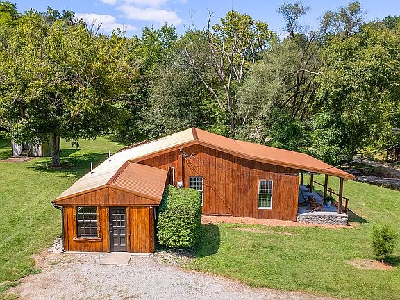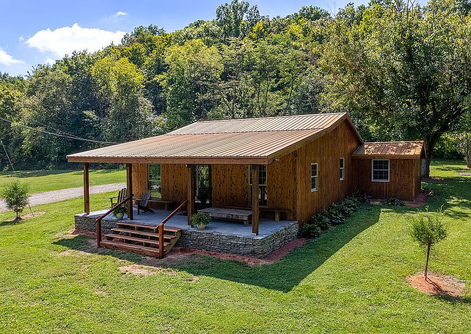 Looking for a lifestyle that's convenient to the city but offers the charm, space, and seclusion of the country? This quaint remodeled country home, sitting on 6 1/2 acres may be just the one for you. Located 5 miles from I71 off exit 34, this property is 35 mins from Louisville, 45 mins from Florence. This home borders Town Branch creek with beautiful water frontage, waterfalls, and surrounded by trees and nature. This home features 3 bedrooms, 1 bath with a huge 12 x24 kitchen with vaulted ceilings, granite, custom breakfast bar, open to dining room, and adjoining living room. Mudroom includes a built-in gas grill with granite custom cabinet. Upgrades include new roof, anderson windows, electric, plumbing, HVAC, flooring and new bathroom with walk-in shower. Cedar skinned exterior with 10x24 covered porch. The garage/workshop is 24x40 with 240amp service, compressed air lines, water, concrete floors, insulated, new roof, and additional covered concrete porch and attached18 x 40 three sided shed that could be used for horses.