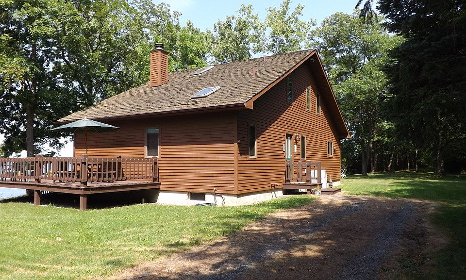 Situated in a quiet cove between two points, this is a spectacular 1,800 SqFt timber frame home. Wrap around deck, perfect for entertaining in privacy with Cayuga Lake views, breezes, and stunning sunsets! Open floor plan with lofted ceilings, private lawn, 625' of soft shale beach, and deep water frontage. Convenient location just outside historic Aurora and off the Rt 90 Scenic Byway. Easy commute to Ithaca, Cornell, NYS Thruway. Boat to your favorite winery or restaurant or just stay home and enjoy tranquility. Furnishings available to simplify your move. Call today for a private showing!