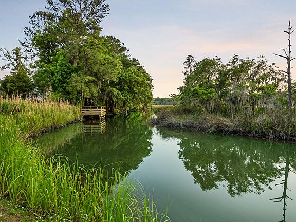 Looking for a home that's private yet still convenient to everything? Enjoy picturesque views of Church Creek and the vast expanse of marsh from the entire rear of the home. Grand oaks, marsh grass, deer, rabbits, herons, and porpoises make this the perfect place for those that appreciate feeling immersed in nature. This modern floorplan has everything. From a generous sized primary suite complete with a custom walk-in closet and full en-suite, to an open concept living / kitchen area, to a butler and walk-in pantry, to garage space galore, this home truly has it all. In addition to the main home, there is a separate guest suite connected via an exterior porch just outside the screened-porch of the main home. The guest suite has a bedroom, bathroom, living area and kitchenette.Separate guest suites are a rare find in this area so if you're looking to house an aging parent, child in transition or set up a home office, this is your chance. This property has been designated as one of the few in the neighborhood to build a shared dock with the neighbor. In addition there is an existing community dock just steps away from the home. Battery Gaillard is connected to West Ashley Park via a walking trail. Outdoor sports activities are just a walk or bike ride away as are other amenities such as playgrounds, fishing, and disc golf.