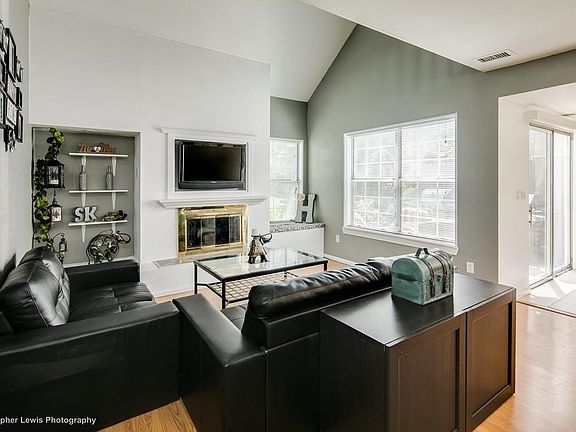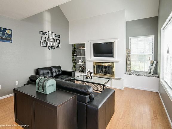 Wander home to this delightful move-in ready townhome. The welcoming living room features gleaming wood floors, vaulted ceiling, a perfectly placed fireplace with media space above, built-ins on one side and a cozy window seat on the other side. A wall of windows brings in the sunshine. The dining area is adjacent and sunny as well. The light and bright kitchen has eating space for two, a cove ceiling, pleasant cabinetry, counters and white appliances, plus sliding door access to the charming patio overlooking the open space nearby. A well-placed bedroom and full bath are also located on the main level. A beautiful wood feature wall leads to the upper level loft, overlooking the main level living area and perfect for rest and relaxation. The master suite is a serene retreat and offers a dormer window, a ceiling fan and a well-appointed en suite bath. There are in-unit laundry hook ups and a reserved parking space.This lush neighborhood also has a community pool to enjoy. Wander home.