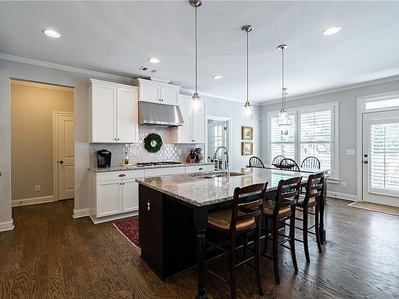 • Kitchen Features: Breakfast Bar, Eat-in Kitchen, Pantry, View to Family Room, Stone Counters, Kitchen Island, Cabinets White