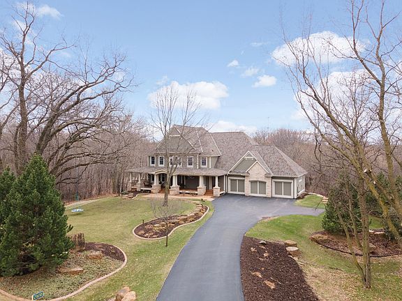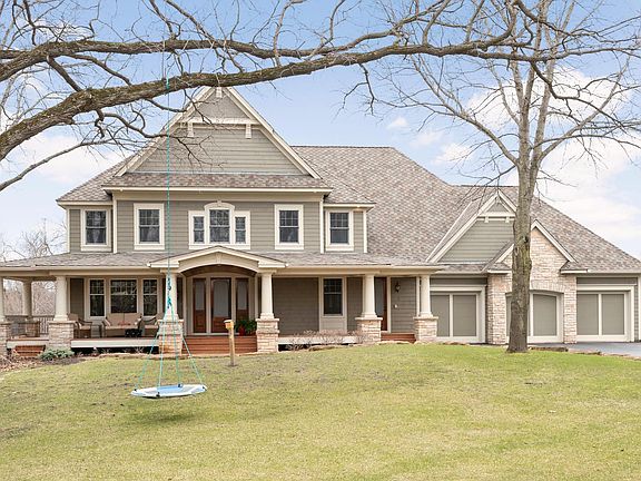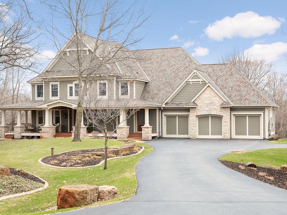 Stunning, custom-built 2-story situated on private, 4+ acre sprawling, wooded lot in highly desired Monterey Ponds nhood and Lakeville schools. Grand, wrap-around porch welcomes you home. Main level features hardwood floors throughout kitchen and formal, 2-story dining room with gorgeous ceiling beams, gourmet kitchen with oversized center island, custom cabinetry throughout & beverage center, great room & sitting room with fireplace, informal dining area and incredible 3-season porch with cedar siding and ceiling. Upper level boasts a luxurious Owners Suite with vaulted ceiling, fireplace, oversized custom walk-in closet, spa-like bthrm with jetted tub, fireplace, walk-in shower, dbl vanities & in-floor heat. 3 additional bedrooms, full bath, loft and laundry complete the upper level. W/O LL features in-floor heat, family rm with fireplace, rec room & wet bar. Outdoor living features a lower level patio, deck off of the 3-season porch, firepit, pond and acres of wooded estate.