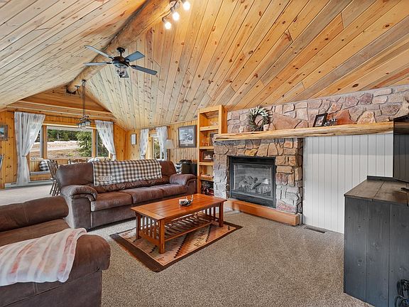 Picturesque fully-furnished cabin showcases open-concept main floor living & is supremely located on a pine-studded 1/2 acre on the Lead Country Club Golf Course & across the road from hundreds of acres of forest service land! Open concept layout w/inviting eat-in kitchen hosting log & wood beamed ceilings, island & substantial dining area. Vaulted ceiling & cozy stone-encased gas fireplace adorn the sun-drenched living room, which opens to a lovely covered deck. Luxurious master suite w/2 closets & walkout access to a covered deck & full bath that boasts a double vanity. Sizable 2nd bed w/walkout access to a 2nd open deck & a 2nd full bath. Knotty pine wood throughout. Home is located across the road from the scenic Mickelson Trail, close to many other trails & is less than ten miles from Terry Peak Ski area. Home can be rented out for 2 weeks out of the year.