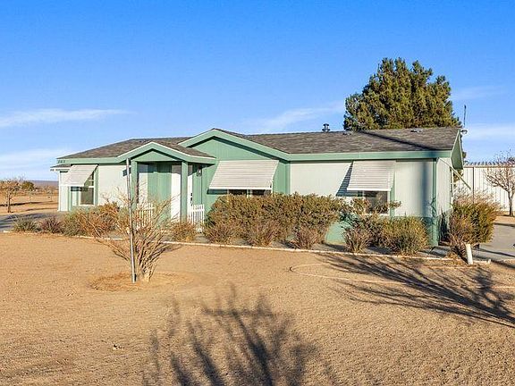 Beautifully Updated Turnkey California City Modular Home! This 3 bedroom 2 and a half bath home is sitting in 2.6 acre land. Open kitchen and living room. Recently updated with a NEW Roof, interior and exterior paint, five NEW windows molding and screens, NEW flooring in kitchen both bathrooms and laundry mud room, NEW Dishwasher and kitchen faucet, NEW kitchen lighting, blinds and toilets in both bathrooms. This property comes with a washer, a dryer and refrigerator. On the back you have a 60 x 80 insulated metal Workshop with skylights, electrically wired for 220 volts, a large 100,000 BTU gas heater, tankless water heater, a half bath, a kitchenette which includes two refrigerators and plenty of counter space, two 50's style table and chair sets, washer and dryer, 12,000 lbs extended wheelbase 4 post lift, enclosed is a small workroom with storage and window AC unit, with attached storage room. This is a wonderfully unique property fully fenced and lined with pine trees, plenty of hose hookups throughout the property for gardening. Come and take a look, you will fall in love with the lifestyle this home brings.