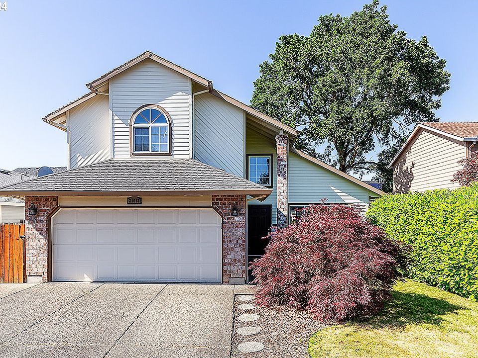 Welcome to this inviting traditional home in a peaceful neighborhood, located conveniently with easy access to Nike, Intel, shops, restaurants, and Hwy 26. This home combines comfort, functionality, and accessibility in a desirable neighborhood setting. Step into the spacious living room adorned with vaulted ceilings and a large picture window that overlooks the well-manicured front yard. The kitchen is well-equipped with newer appliances and features an eating bar, seamlessly opening into the cozy family room. A sliding door from the family room leads out to a deck, perfect for enjoying outdoor gatherings.Ascend the wide stairway to the primary suite, which includes a private bath and a spacious walk-in closet. Two additional generously sized bedrooms complete the upstairs living quarters. Outside, the private fenced backyard offers mature landscaping, sunny elevated decks, and a hot tub, providing an ideal setting for gardening and entertaining.