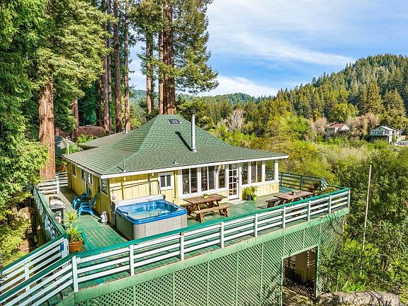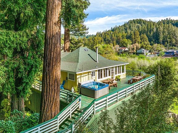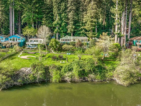 Beautiful and charming home with sweeping River views. Floorplan offers large open living area with a wall of windows allowing so much natural light to fill the space. Easy access to the huge wrap around deck overlooking the grass meadow and River. Many options and space for entertaining. Beautiful Redwoods in front and rolling lawn in back. Outdoor lovers' paradise with Hot tub, fire pit, seasonal dock, bbq set up. Large 4 bedroom 3.5 bath home with flexible floorplan allowing for separate living spaces if desired.