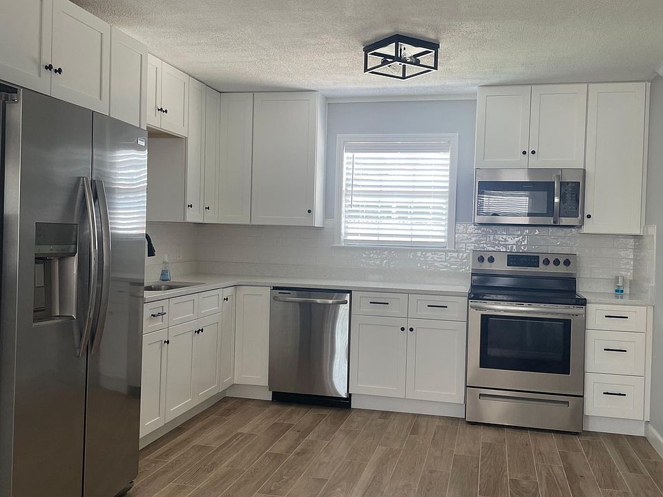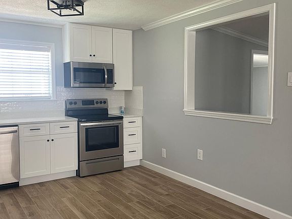Fully renovated: new tile flooring, kitchen cabinets, countertops, interior doors, trim, crown molding, and light fixtures/fans