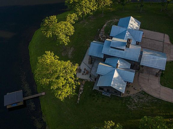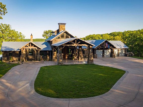 Home for sale Lake of the Ozarks, Benton County Mo Luxurious Lodge Home on267+/- ac overlooking your 20-ac private lake in the Ozark Mountains will impress anyone. "The Lodge of the Lake" located in Benton County, near Warsaw, Missouri and The Lake of the Ozarks. This large timber framed home boasts 7308 sq. ft of finished living area. 3 Bed, 2 full baths and 2 halfbaths with an attached 4 bay garage that is almost 3000 sq. ft. This could be a home, private retreat or Corporate Lodge. Luxurious Home for sale Benton County Mo As you enter through your own private security gates you will notice the 1/4 mile long private, stained and stamped concrete driveway that leads you to "The Lodge on the Lake" This one-of-a-kind custom timber framed built Lodge that was erected in 2019. I cannot begin to describe the one of a kind features this Home/Lodge has to offer. Beginning with the luxurious 14' tall custom cypress handmade entry doors to the 55 ft tall fireplace built of native stone from Missouri and Arkansas. The main entrance has enormous, vaulted ceilings that brings the feel of a true mountain Lodge. The interior walls are made of oak twice kiln dried flat logs along with 2 x 6 walls filled with spray foam insulation. The inside post beams are all Douglas Fir and outside post beams are made from Cypress logs. The wood flooring, interior doors and interior trim in this home came from the Old Springfield Missouri stockyards and they have all been refinished and used throughout the home. This chef's kitchen features high end kitchen appliances, custom walnut cabinets with stone accent, the countertops and Island are a main attraction as they are from rocks mined right here in southern Missouri. The large dining room is big enough for a large group of family or corporate partners. The master bedroom is complete with his and her bathrooms, walk-in closets, fireplace, makeup area, extravagant walk-in shower and workout room. Home comes complete with an elevator. One cannot help but notice the magnificent lighting throughout the home. All lights were custom handmade and painted scenes on the glass. The basement area of the home has a large living room area, beds, baths, theater room, finished vault room lined with Walnut cabinets with steel vault door. The attached garage has room for numerous vehicles, boats and toys. It also has a large storage room finished with Walnut cabinets that are lined on the inside with cedar. The deck on the back of the home has custom railing and plenty of doors in and out of the home. The walkout basement area is covered with an outdoor wood fireplace. You could not picture a more relaxing place to spend the evening entertaining or just relaxing as you overlook the Ozarks and your private lake. Land for sale Benton County Mo. The property is just as magnificent as the home. Nestled in the Ozark Mountains only minutes from Lake of the Ozarks, is your private retreat with a 20 ac Lake with boat dock. The stocked lake is clear and a fisherman's dream. This is a very private setting and cannot be seen from the road. The wildlife consists ofTrophy whitetail deer, turkey and other local wildlife that is native to Missouri. Hunting property for sale Warsaw Mo This property is loaded with deer and turkey, I have personally seen bucks that would score well over 160". The land offers great whitetail and turkey habitat with lots of oak timber, white oak ridges and draws. Deer spend a lot of time in the yard as the owner does not hunt this property rather it kept as a refuge for wildlife. The Lake is stocked with bass, blue gill and catfish. There is a feeder on the dock that will stay with the property. The Lake is 30' deep at the damn, has a tube and spillway to relieve water and keep the lake at a perfect level. There is a one slip dock awaiting your boat with electricity and lights. Lake of the Ozarks Home for sale This is truly a once in a lifetime Custom Home with attention paid to every d
