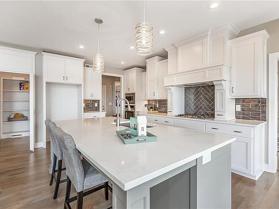 - Features: Kitchen Island, Pantry, Solid Surface Counter, Wood Floor
