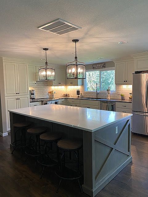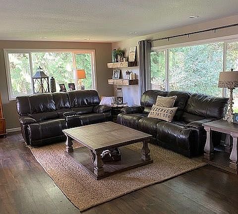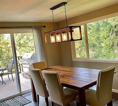 Lg picture windows bring nature in and keep it light & bright! This Daylight Ranch is nestled into a private setting at the end of the road. Completely remodeled - Brand new beautiful kitchen, vinyl windows, flooring, appliances, siding, roof, exterior and interior paint,heat pump, well Lg room sizes, 2 FP's & newer easy care aluminum deck! The 3 car garage is extra deep & wide with shop area. Fully fenced 5 acres. Leveled area w/ elect & water for future shop or barn? Outdoor fire pit, walking trails, garden - a GREAT place to live! Wonderful schools