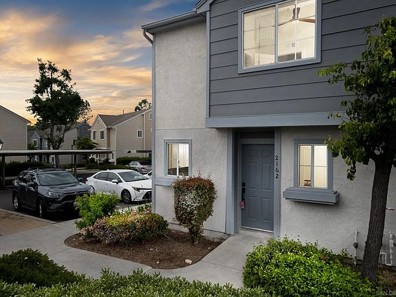 Two story end unit 2 bedroom 2.5 bathroom in the private gated community of Ashford Park in Spring Valley is ready for you to call a home! An inviting open floor plan creates a warm and welcoming ambiance with its recessed lighting and natural light right when you step inside! The living room features a central fireplace and is next to a private patio where you can enjoy the indoor and outdoor living space. The kitchen has designer touches and modern finishes. Downstairs, you'll also find a convenient half bathroom and laundry room. Upstairs are your two dual primary bedrooms. One of the rooms includes a spacious walk-in closet, while the other opens onto a charming balcony. Ashford Park has a playground, a community pool, and is dog friendly! Easy access to the South Bay Fwy (125), restaurants, markets, and more!