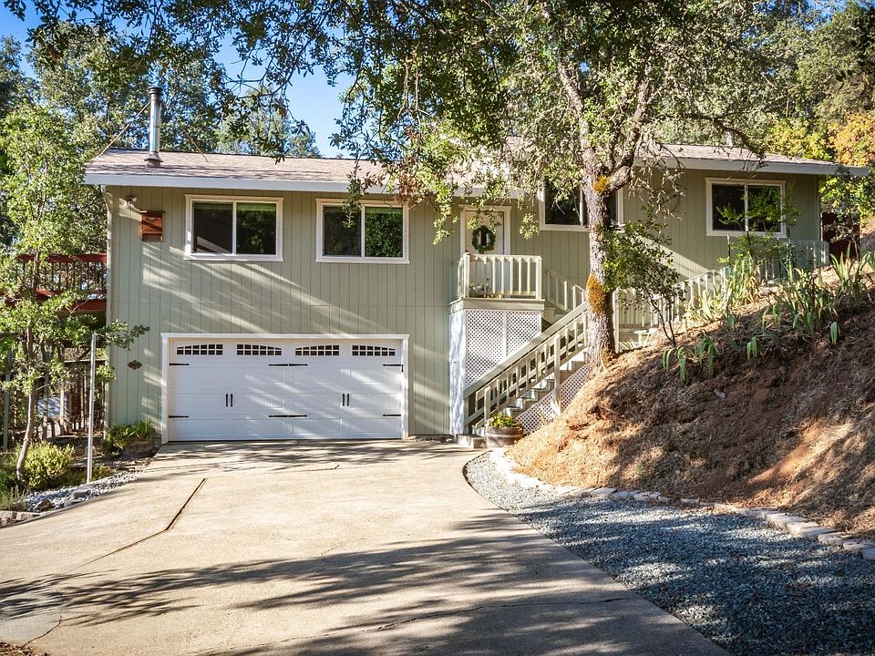 This beautiful home in Rescue enjoys privacy and snow-capped Sierra views in the winter! Situated on 1 acre, and nestled on the hillside, this home features 3 bedrooms and 2 bathrooms, and another possible bedroom, a full bathroom and custom office area with built-ins on the lower level. The spacious living room with vaulted ceiling and an abundance of windows to let in gorgeous natural light. With open concept living, you'll find expansive granite counters in the kitchen, a ton of storage, a walk-in pantry and bamboo flooring in the kitchen, dining room and entry. The dining room has a slider that leads to the spacious deck and backyard for wonderful relaxing and entertaining space. The backyard is a perfect size for enjoyment and maintenance, and features a cute shed with French doors...how would you use it? Various areas of the property have been utilized for country life, including RV parking, a ready-to-go chicken coop, and small pasture area that was used for sheep. The primary suite also has a slider leading to a pergola covered portion of the back deck, bamboo flooring, and an updated bathroom. Situated in an ideal location for accessing everything El Dorado County has to offer, clear pest report,and an easy commuting route. You won't want to miss this one!