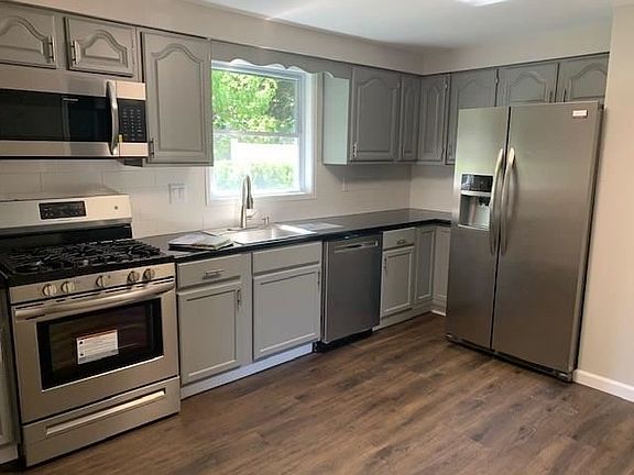 Awesome,remodeled 2 story colonial corner lot with stately pillars, Front, Updated grey kitchen cabinets with newer refrigerator, stove, microwave. Freshly painted, light grey walls throughout. 1st level-all vinyl hardwood floors. Left of kitchen-family rooms with gas fireplace that leads to outside through double glass doors to concrete patio. Laundry room- left of kitchen with washer and dryer and folding bench. New grey carpets on 2nd level in all 4 bedrooms with large closets and 2 full bathrooms. Finished 25 ft.basement and 11 ft. storage room adjacent. READY TO MOVE IN!!!