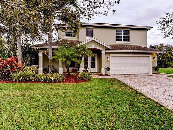 Discover this rare concrete block 2 story, 5 bdrm, 3 1/2 bath 2 car garage home. Architectural features include arched entry ways and tray ceilings. Upon entering you are greeted with expansive 26 foot ceilings and designer trim work. The newly remodeled kitchen features quartz counters, custom cabinetry, tiled backsplash, undercounter lighting and stainless appliances. 2 master suites, 1 on main floor and 2nd upstairs. Nestled on a cul-de-sac lot with custom heated salt pool, spacious backyard backing up to a lush preserve. Enjoy your screened in Lanai complete with built in outdoor speakers. Locks Landing is an ocean access community with boat ramp, trailer storage & waterfront nature trail. This home includes your own deeded extended boat dock for up to 36 ft boat.