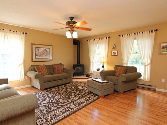 Here it is, a great home on a wooded lot at a fantastic price and close to Route 33! You're going to love the updates and changes the owners have made to this home. The living room is a favorite spot for spending cozy family nights and enjoying the warmth of the corner propane stove. The kitchen has been completely remodeled to offer a great place to prepare everybody's favorite meals. The current office can easily be used as another bedroom or family room. It has pocket doors and a closet for storage. The beautiful hardwood floors you see downstairs don't end at the steps to the second floor! The hardwood flooring continues to the three spacious bedrooms on the second floor. The master bedroom is huge and features a great walk-in closet and the bathroom has also been recently remodeled. There's so much to love about this house, including the large deck overlooking the 1 acre wooded lot. No neighbors to see when looking out your back door! See this great home today!