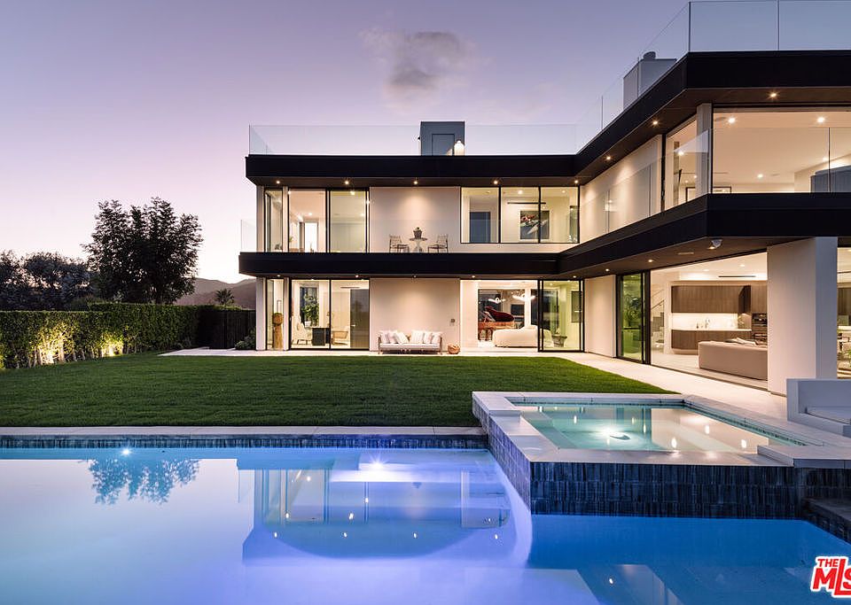 Experience modern California luxury in this architecturally stunning Brentwood estate, completed in 2020. This newer construction home features 5 bedrooms, 5.5 bathrooms, and approximately 6,468 sq ft of refined living space set on a 9,724 sq ft lot with breathtaking panoramic views stretching from the Pacific Ocean to Downtown Los Angeles. Designed for contemporary living, the open-concept floor plan showcases soaring ceilings, floor-to-ceiling glass walls, and designer finishes throughout. The gourmet chef's kitchen offers top-of-the-line appliances, sleek custom cabinetry, and a statement island ideal for both entertaining and everyday life. Luxury amenities include a private movie theater, temperature-controlled wine cellar, and a 1,600sqft. rooftop deck capturing 360-degree views of the city and coastline. Outdoors, enjoy resort-style living with a sparkling pool and spa, built-in BBQ, and fire pit lounge perfect for hosting gatherings under the California sunset. Located in one of Brentwood's most desirable neighborhoods, this modern estate is just minutes from scenic hiking trails, Santa Monica beaches, and the heart of the Westside. A rare opportunity to own a move-in ready luxury home in Los Angeles, offering the perfect blend of elegance, comfort, and iconic Southern California lifestyle.