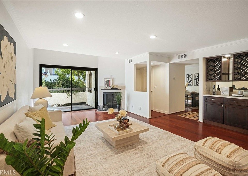 Beautifully Upgraded two story Townhouse in Woodland Oaks, Situated in the desirable Woodland Oaks gated community, this 2-bedroom, 3-bathroom townhouse has been tastefully upgraded throughout. The bright open floor plan features beautiful engineered wood flooring , recessed lighting, and a spacious living room with gas fireplace that opens to a private patio, perfect for entertaining.The remodeled kitchen includes quartz countertops, new cabinetry, stainless steel appliances, and a convenient laundry closet with full-size washer and dryer. The dining area opens seamlessly to the remodeled kitchen and extends to a second private patio, creating the perfect setting for indoor-outdoor entertaining. A powder room completes the main level. Upstairs offers two large ensuite bedrooms. The primary suite features dual closets, including a walk-in, and a brand new vanity and Brand new bathroom. The secondary suite also has its own private bath, brand new vanity and ample closet space. Additional highlights include a detached two-car garage, central HVAC, and thoughtful finishes throughout. Community amenities include a pool, spa, and recreation room, all within beautifully landscaped grounds. Prime location near shopping, dining, Costco, Topanga Mall, The Village, Calabasas Commons, freeway access,