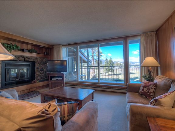 FIRST floor unit (minimal stairs) with open West-facing views, 2 Bed- 2 Bath with AMAZING VIEWS of the golf course, snow capped mountains and meadows. See wildlife from your patio. Wood burning fireplace, Adjacent to open space and the 5th hole of the River Golf Course. Complex has a great clubhouse with pool and 2 large hot tubs. Shuttle stop is right out the front door in the parking lot. NO transfer tax or extra resort fees!