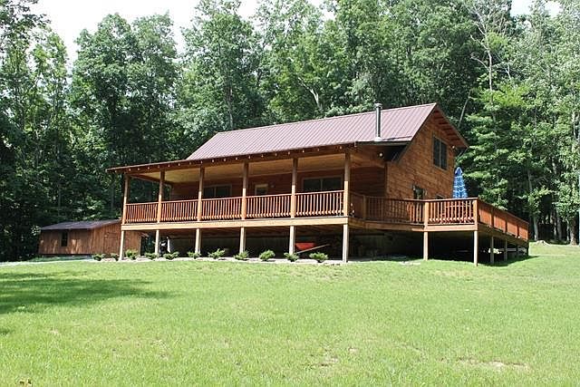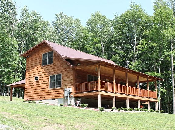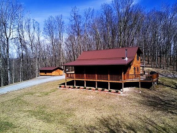 Custom built cabin with timber harvested from the land. Sited on 28.75+/- acres of pristine mountain land. This exposed beam 2-3 BR, 2.5 BA home boasts gorgeous views of Whitetop mountain the 2nd highest peak in Virginia & seasonal views of Mt Rogers. Home offers 1,728+/- sqft with an open floor plan with a 21 x 11 open loft that could be used as the 3rd BR. Great room boasts a woodstove, cathedral ceiling, hardwood floors & plenty of natural lighting. The kitchen features double sinks, built in oven & microwave, dishwasher, gas cooktop, granite countertops & locally hand crafted custom hickory wood cabinetry along with a custom table with a granite inlay to match the countertops. Other amenities include a spacious laundry room with half bath & access to the oversize carport with custom wood ceiling, covered porch, & a spacious 21 x17 outbuilding with electricity. Just minutes from the Whitetop station on the VA Creeper Trail, the AT, National Forest & premier trout fishing.