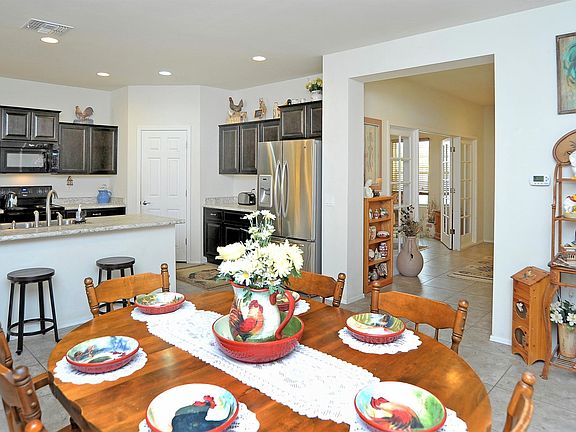 This gently lived in, like new 2015 Pulte Home boasts over 1,900 sf of tastefully finished single-story living space, and is offered for sale by the original owners. Attention to detail is evidenced by, expanded driveway with pavers, manicured landscaping, pleasing paint choices, and a custom carved wrought iron security door. The covered rear patio with even more pavers extends to meet the turf and raised garden beds, with plenty of room for your furry friends. Inside, the open floor plan and centrally located kitchen promotes family inclusiveness. The Den (or 4th bedroom?) and large tile floors add to this tremendous value!. The expansive tandem garage allows for workshop/gym/toy storage space without compromising your vehicle's parking. Move right into this pristine property today and start enjoying your new home.