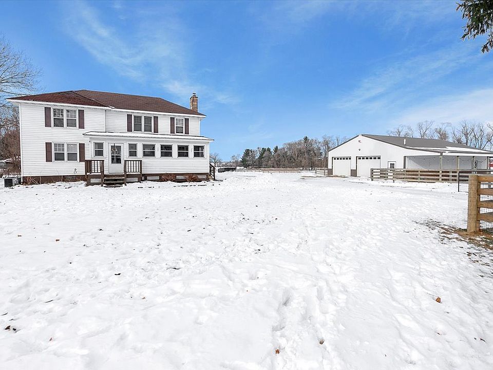 Welcome home to this wonderful farmhouse full of country character. This 4 bedroom 3 full bath home has hardwood flooring throughout. The main floor boasts a nice size living room with a wood burning stove to cozy up to on these chilly nights, along with the kitchen and formal dining room there is a family room, 2 bedrooms, laundry/mud room and a full bath also on the main floor,. Could be a nice in-law setup. Upstairs you'll find 2 more bedrooms and 2 more full baths. But OH! There's more. Outside the 40x60 barn complete with lean-to Is split in half. You get half for your 4+car garage/workshop 2 16' overhead doors and in floor radiant heat. The other side is ready to shelter your four footed friends. This 5 acre property is completely fenced in. Including electronic entry gate. Natural gas not propane.