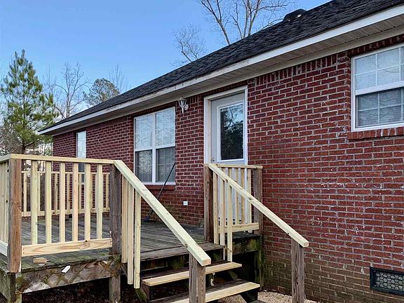 VERY LOVELY HOME! Full brick 3BR/2BA house on large lot surrounded by woods. Lots of entertainment space with covered front porch & back deck.Detached garage is 18 x 20 w/electric with lean to in back also extra large drive for plenty of parking. Crown molding,hardwoods, and tile throughout.Freshly painted! Brand new Electric water heater. Move in ready! A One Year home warranty with Choice Home Warranty will be included!