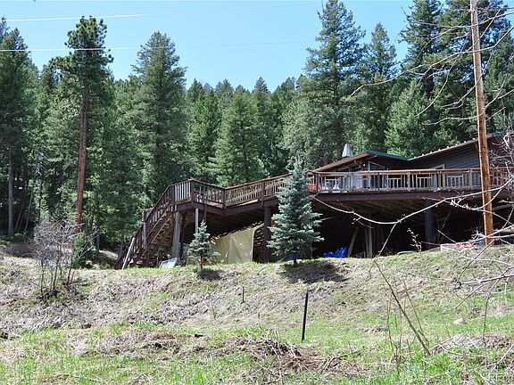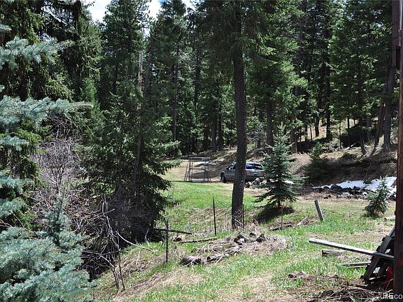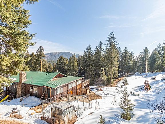 Charming log cabin close to Denver tucked away on a serene hillside lot with towering pines surrounding it! Come inside to see vaulted ceilings, plush carpeting/tile/wood floors, a large living room, wood walls, and a family room boasting a classic wood-burning stove fireplace for cozy evenings. The kitchen comes with wood cabinetry, built-in appliances, and sliding doors that open onto the deck, seamlessly blending indoor comfort with the great outdoors. The bedrooms are thoughtfully sized, ensuring privacy and comfort. Updated bathroom with a tiled tub/shower combination! Venture outside onto the deck to relax and immerse yourself in the scenic vistas of the dense forest and awe-inspiring mountain views. Don't miss this idyllic retreat from the hustle and bustle of daily life!