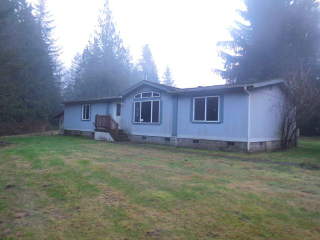 HUD Home! Situated on 3.73 acres is a manufactured home with 3 bedrooms (all 3 with walk in closets) and 2 baths. The home has a open floor plan with vaulted ceilings and a large kitchen with a island. There is a formal living room and family room with a wood burning stove. Multiple outbuildings and a huge 60 X 40 shop/garage. Property is level and secluded. FHA uninsurable due to manufactured home missing affixed HUD certification labels. FHA Case #561-871762