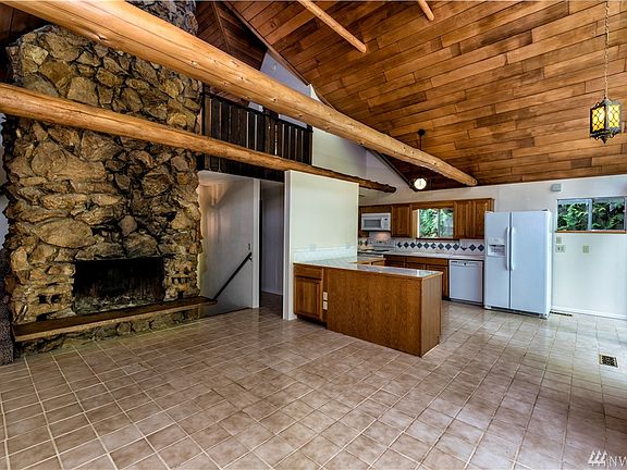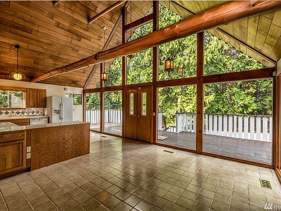 3 Bed with Den, 2.5 Bath with cedar lined sauna , home has great room and is on almost 10 acres. Huge rock fireplace in lower Rec Room and on main floor Great Room. Huge pole building 29ft x 42ft, A-Frame timber type home is 2496 sq. ft. land around the home has huge tress, newly crushed rock driveway, NO flooding area. walking distance to elementary school, Must see this rare find !!